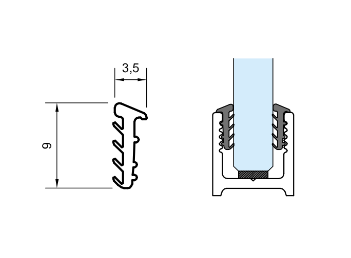Těsnění určené do hliníkového "U" profilu GG202.