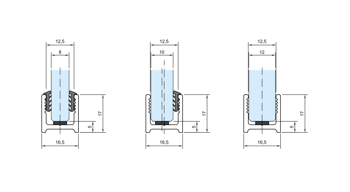 Pro sklo 8 mm se používá těsnění S200 z obou stran.