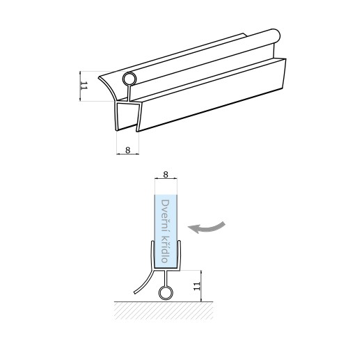 Černé těsnění se stěrkou - spodní, pro sklo 8 mm, délka 2500 mm. Cena za ks.
