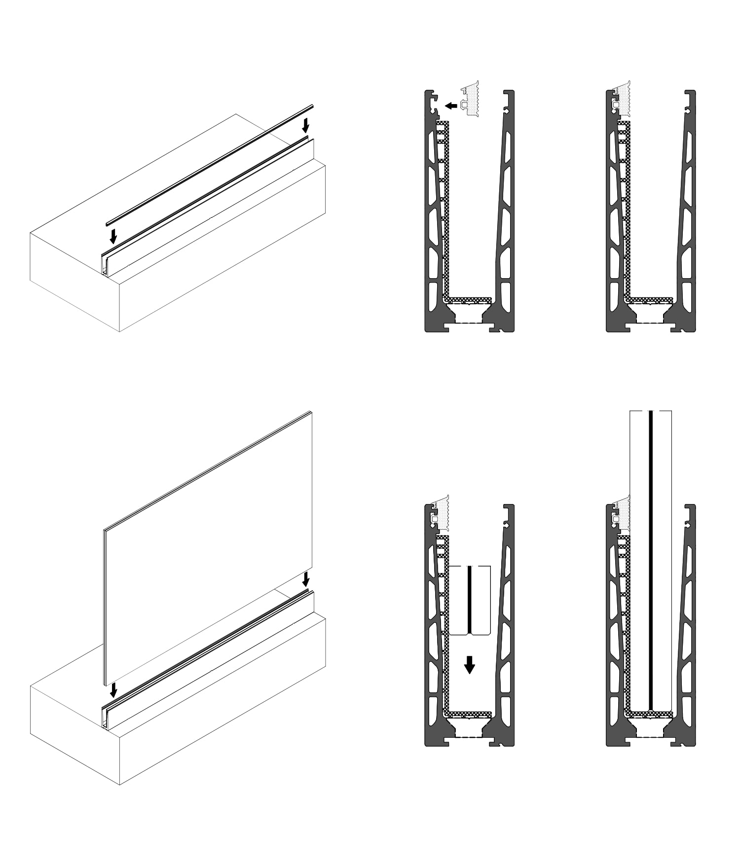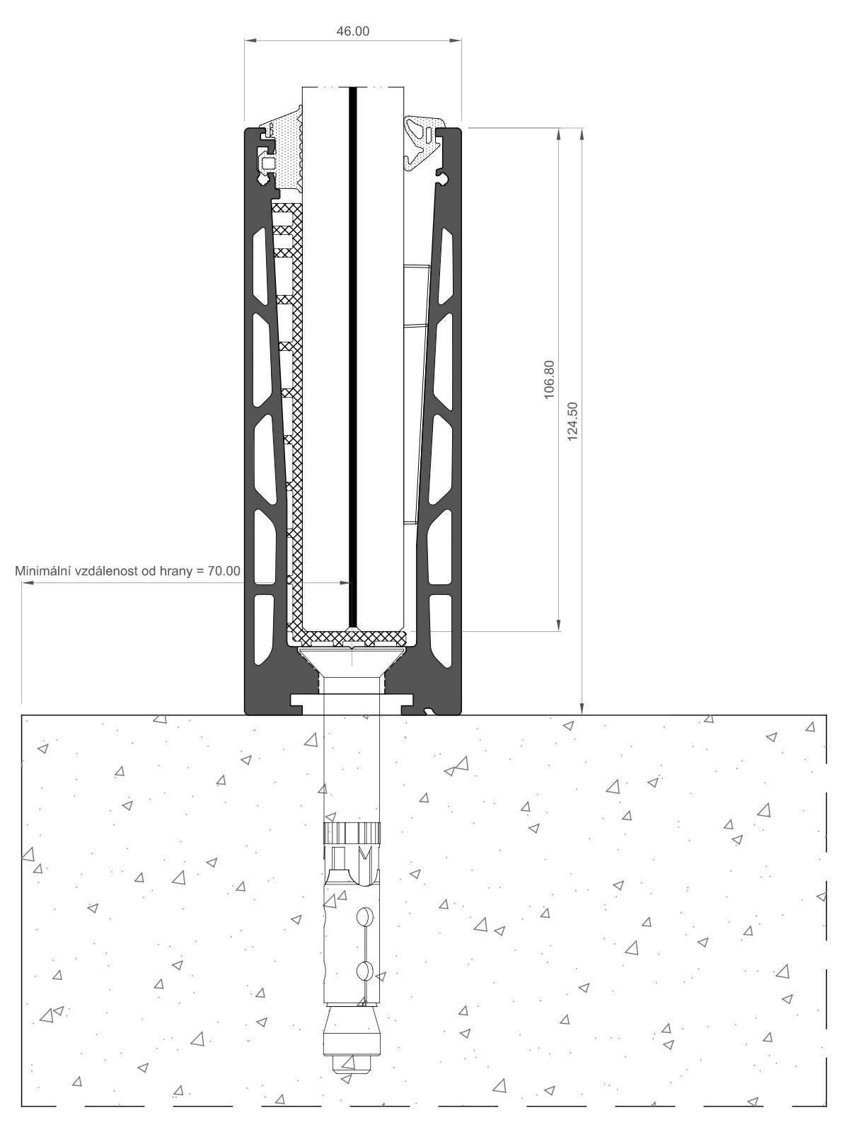 Délka profilu 6000 mm. Prodej po bm. Uvedená cena je za běžný metr předvrtaného profilu, včetně těsnění, podložek a klínů – NUTNO UPŘESNIT tloušťku skla (12,76 / 13,52 mm ; 16,76 / 17,52 mm ; 20,76 / 21,52 mm). Neobsahuje koncové krytky!
